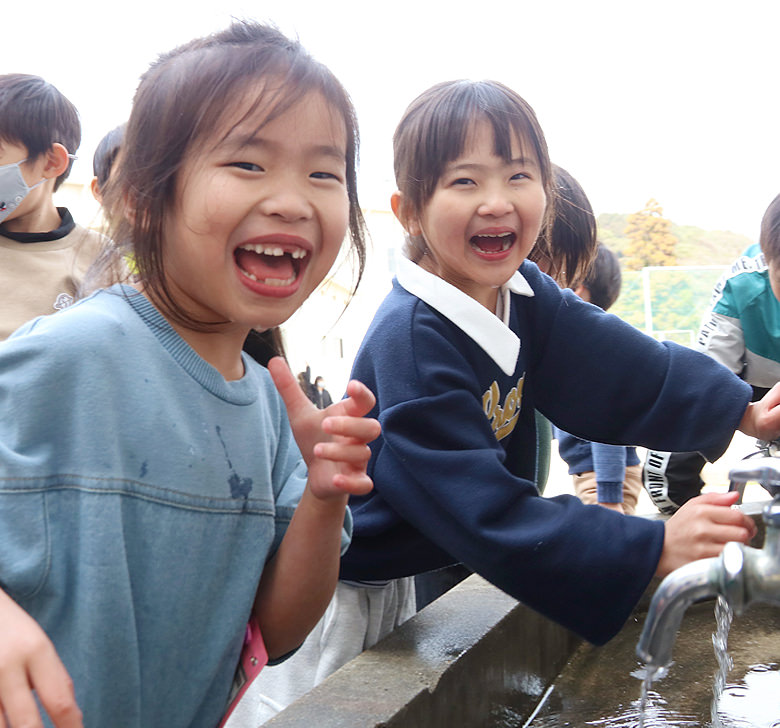 まちの小学校では、子どもたちに自然環境や水の素晴らしさを伝える教育に力を入れています。 例えば、「水辺の環境学習」。町を流れる川や海に住んでいる生き物を調査し、水の水質や、その環境が育む生き物たちについて学びます。 ときには蛍の幼虫を飼育し、放流するなど、きれいな水の素晴らしさを肌で感じる活動を行うことも。 また、社会見学で浄水場を訪れ、きれいな水が私たちの生活にもたらす恵みについて、身近に感じながら学んでいます。 町のきれいな水は、子どもたちが未来にわたり自然を大切にする心を育んでいます。